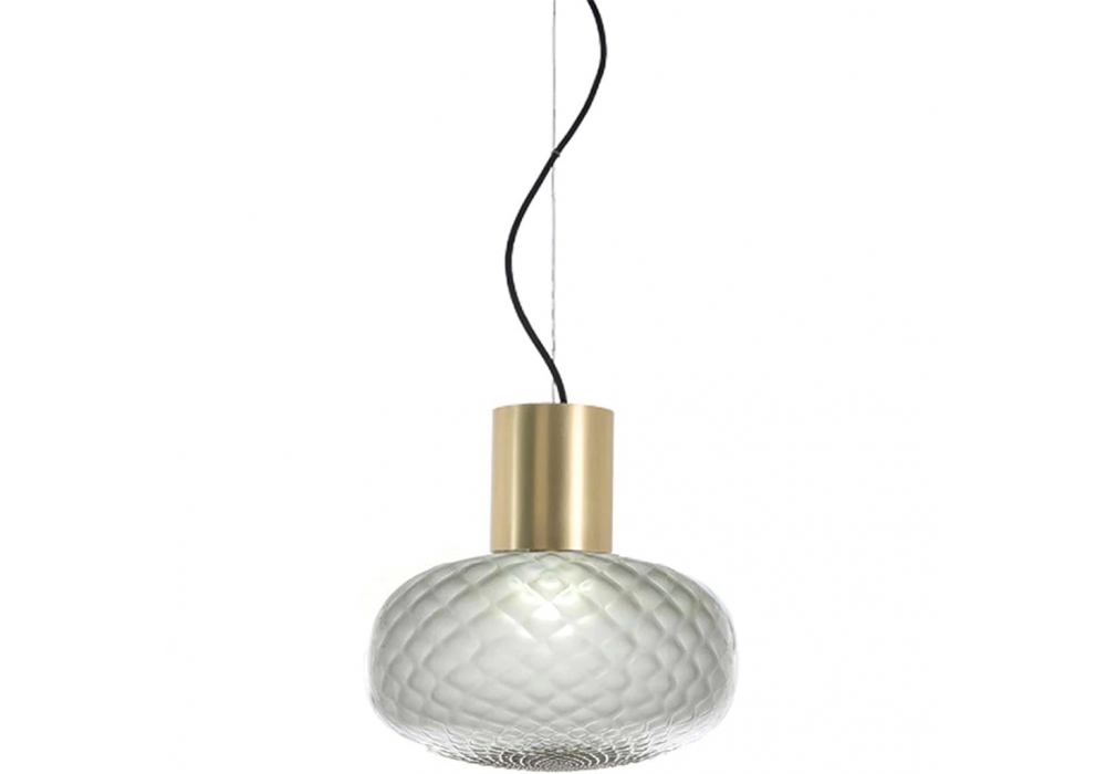 Bloom designed by Matteo Zorzenoni for Il Fanale is a pendant lamp with rosette and lamp holder in natural brass. The diffuser is made of glass with a textured surface and shields an LED light source. Bloom is available in different models and finishes.