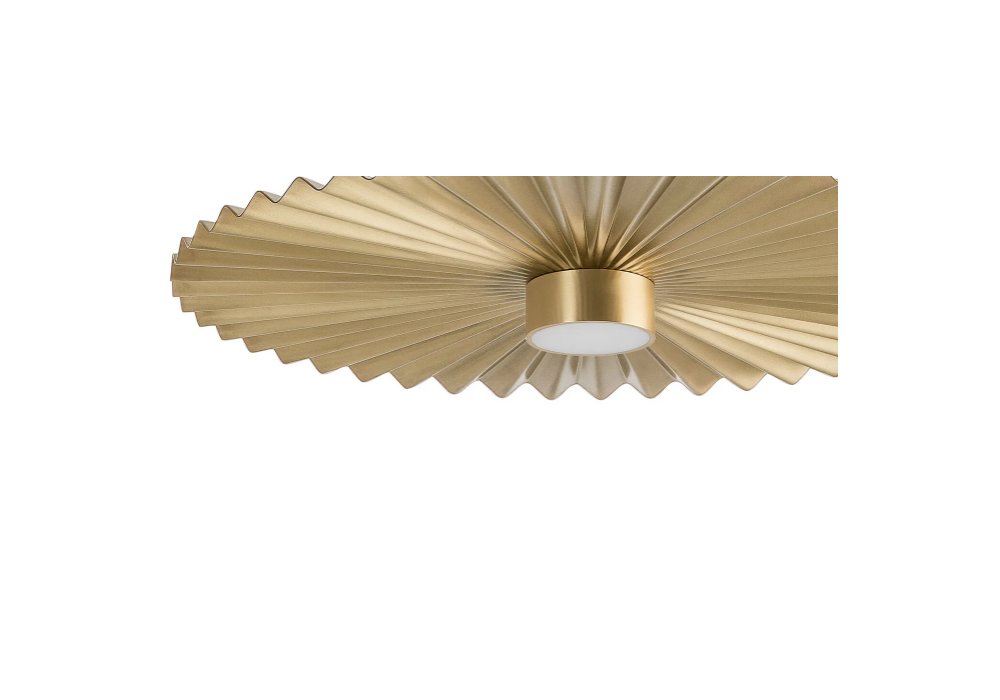 Pliè designed by Paolo Dell'Elce for Il Fanale is a circular pendant lamp with a pleated effect surface in natural brass. The diffuser is cylindrical in shape and adopts an LED-type light source integrated with a Triac dimmability system. Pliè is available in different models.