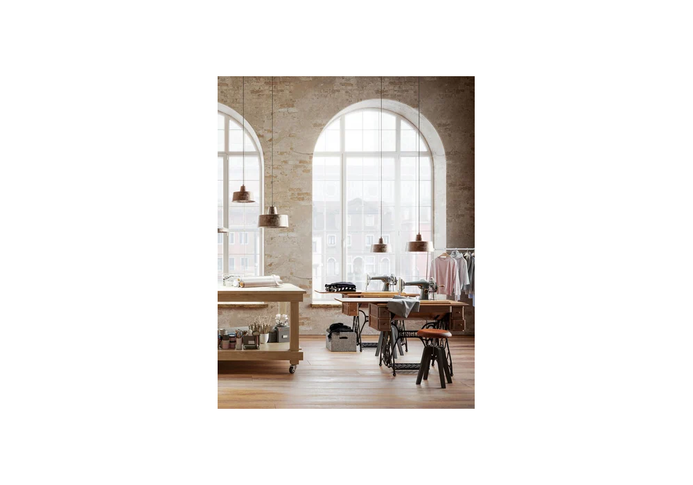 Officina designed by Dt Studio for Il Fanale is a pendant lamp with a circular diffuser in antique iron-coloured metal. The light source adopted is LED type with Triac dimmability system. Officina is available in different models.