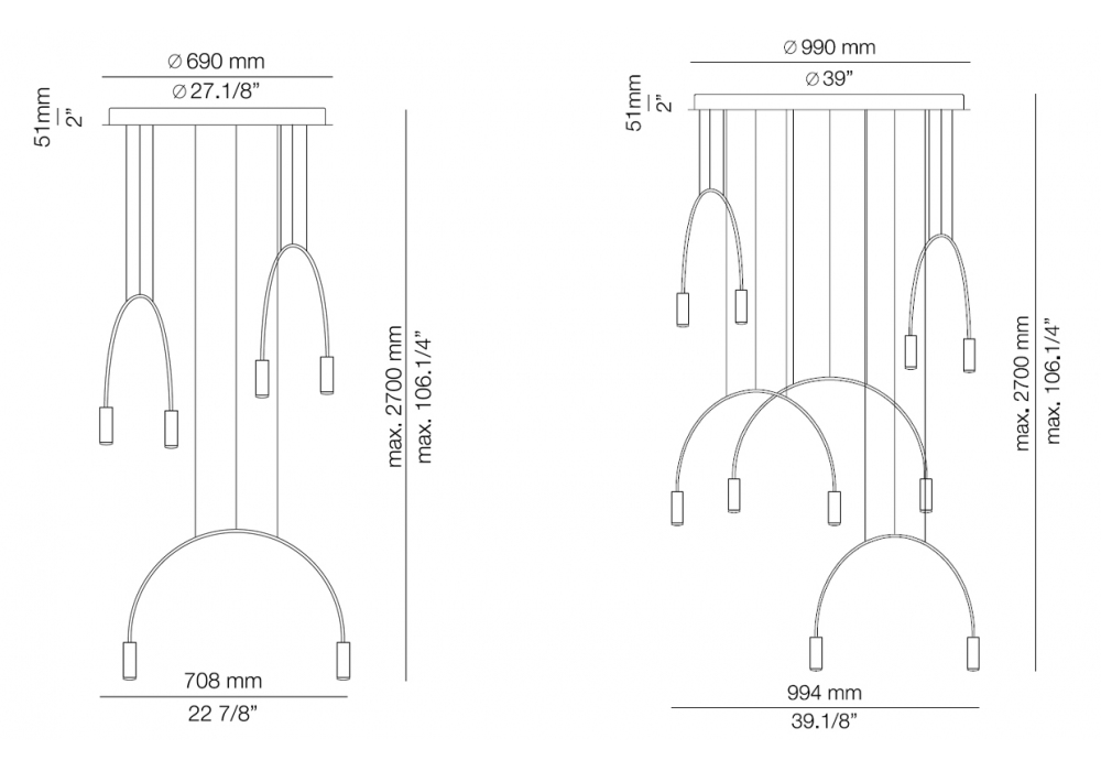 | Dimensions | Ø 69 x H 270 cm; Ø 99 x H 270 cm. |