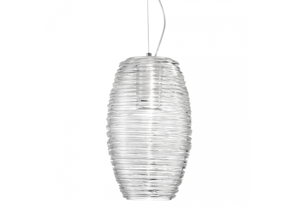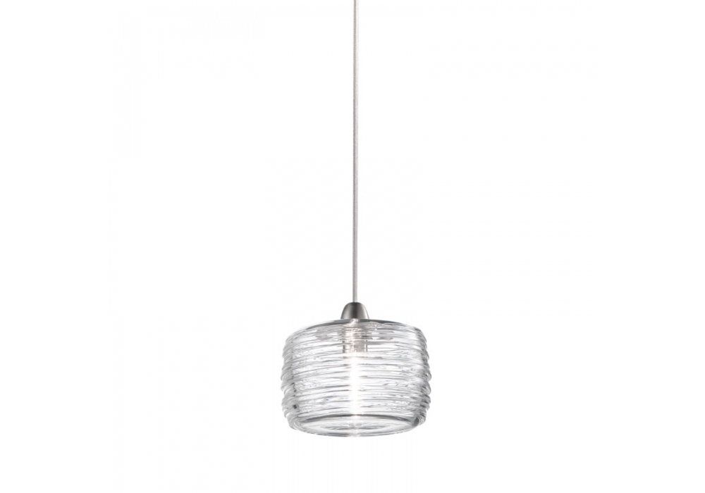Damasco LED designed by Paolo Crepax for Vistosi is a pendant lamp with supporting structure in nickel-coloured painted metal. The diffuser is made of crystal with an irregular surface in two different crystal/amber or crystal colors and adopts a dimmable LED light source in different gradations of light. Damasco LED is available in different models.