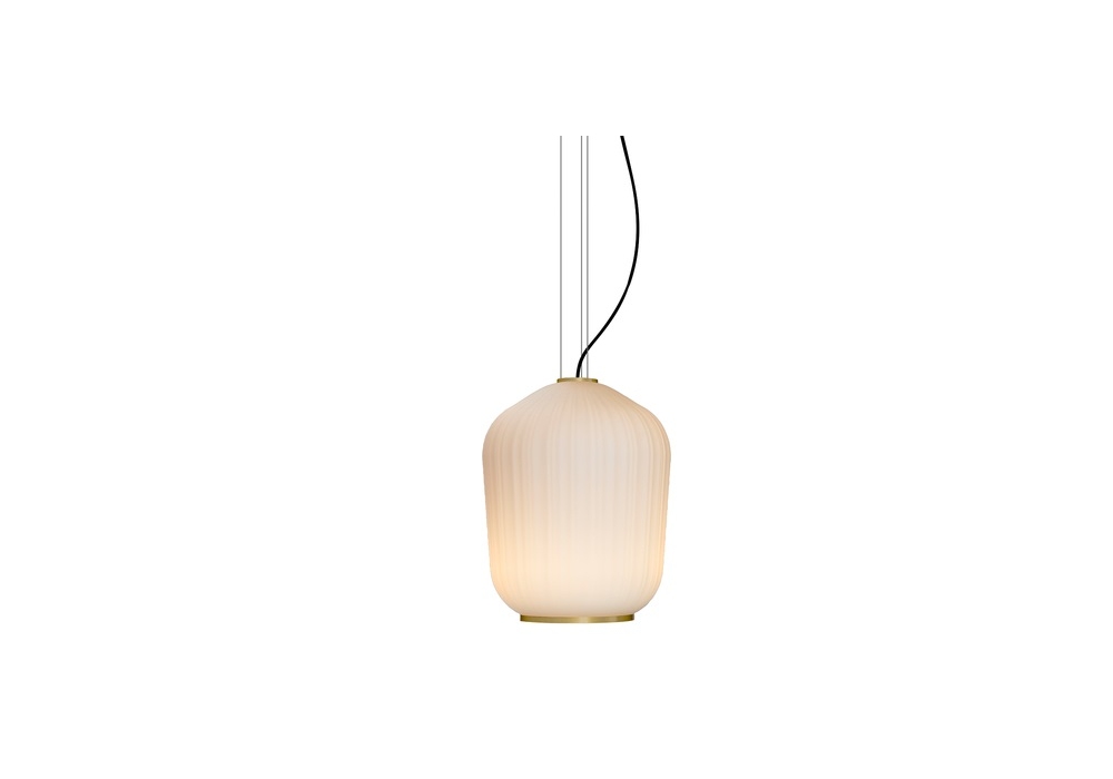 Plissée designed by Sebastian Herkner for ClassiCon is a pendant lamp made with an aluminum ring. Lampshade in hand-blown white satin opal glass with a pleated surface.
