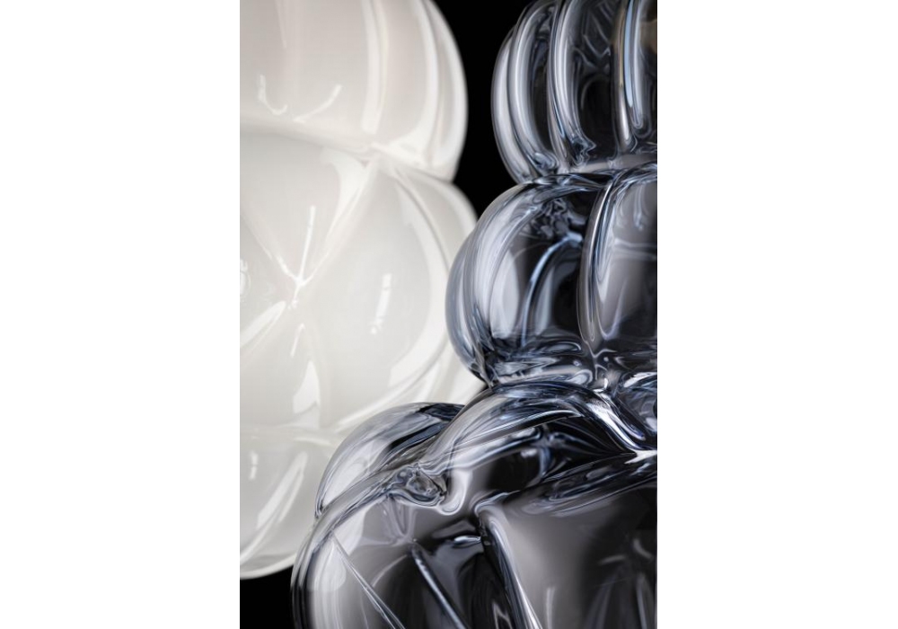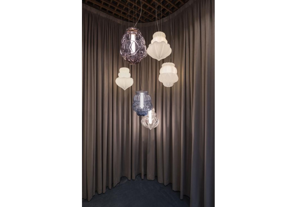 Vallonné designed by Luca Nichetto for Barovier & Toso is a pendant lamp with supporting structure and ceiling rose in black chrome or honey bronze colored metal. The diffuser has a rounded shape in transparent Venetian glass and adopts a dimmable LED light source. Vallonné is available in different models and finishes.