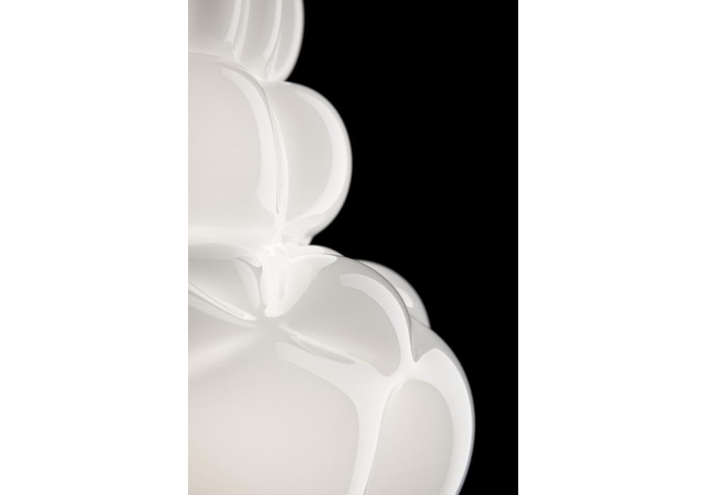 Vallonné Opale designed by Luca Nichetto for Barovier & Toso is a pendant lamp with supporting structure and ceiling rose in black chrome or honey bronze colored metal. The diffuser has a rounded shape in opal Venetian glass and adopts a dimmable LED or halogen light source. Vallonné Opale is available in different models and finishes.