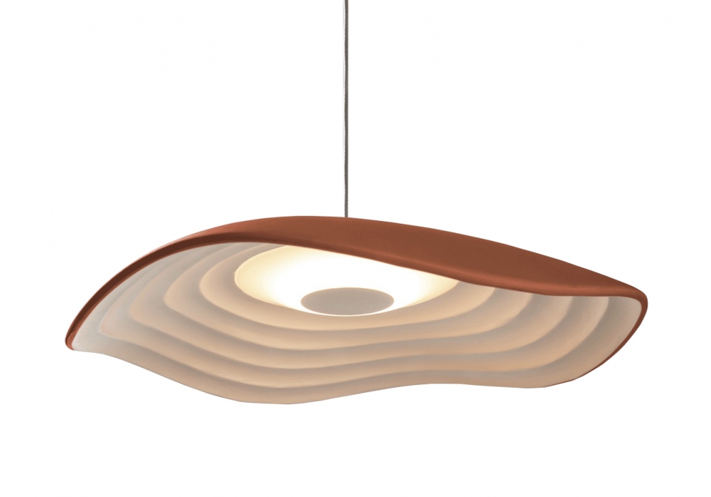 Valentina designed by Alex Fernández Camps for Bover is a pendant lamp with rosette and supporting structure in painted iron and aluminium. The lampshade is circular in shape with waving movements in painted aluminium. The light source adopted is LED type with Triac dimmability system. Valentina is available in different finishes and models.