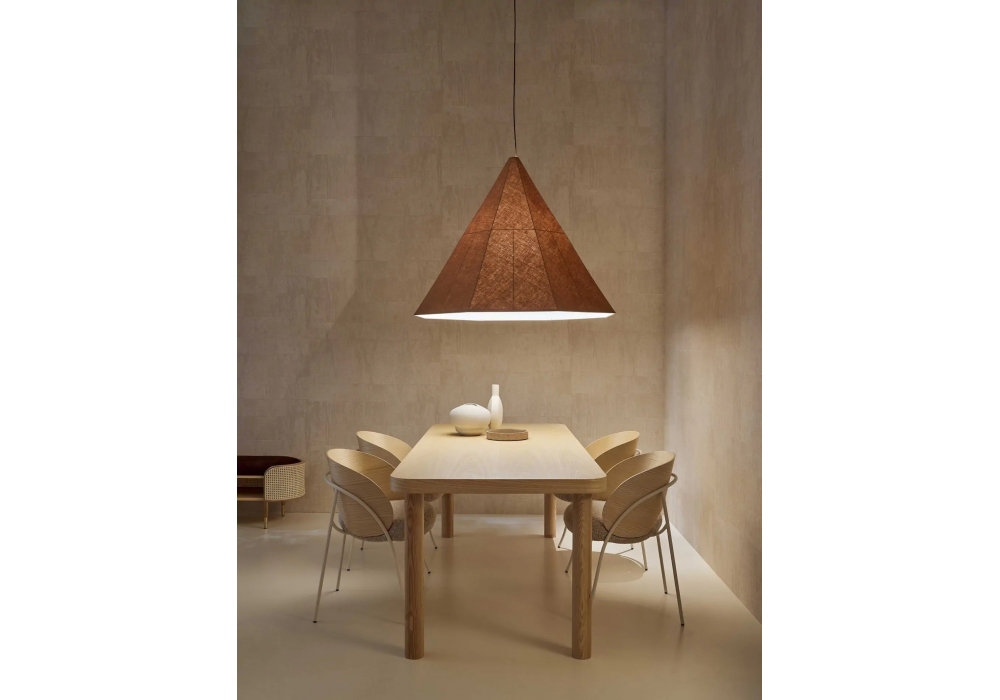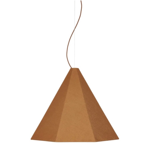 Tipì designed by Francesca De Giorgi is a suspension lamp with fabric lampshade and parchment light diffuser. Available in different finishes and sizes.