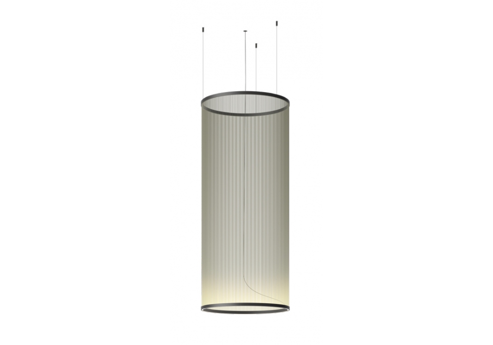 Array designed by Umut Yamac for Vibia is a pendant lamp structured by a series of thin wires stretched between two aluminum and brass rings. The diffuser is made of polycarbonate and shields a dimmable LED light source. Array is available in different models, finishes, dimmable versions and types of rosette.