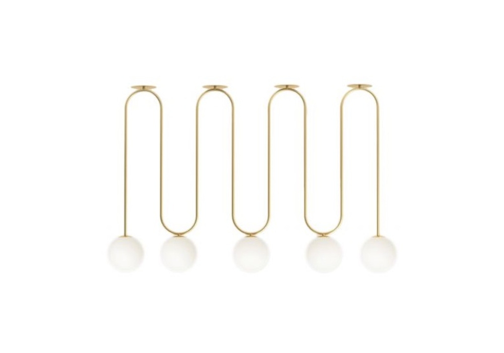 Motive designed by Atelier Areti is a suspension chandelier made of painted metal or brushed brass and white glass diffuser. Available in different versions.