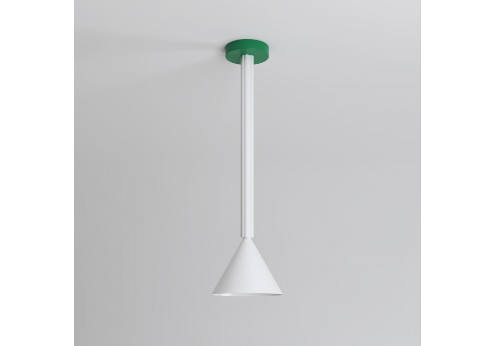 Profiles designed by Atelier Areti is a suspension lamp made of painted metal, available in different finishes and in two models. Upon request, it is also possible to customize the colors of the lampshade, tube and base.