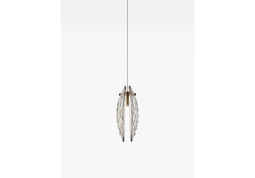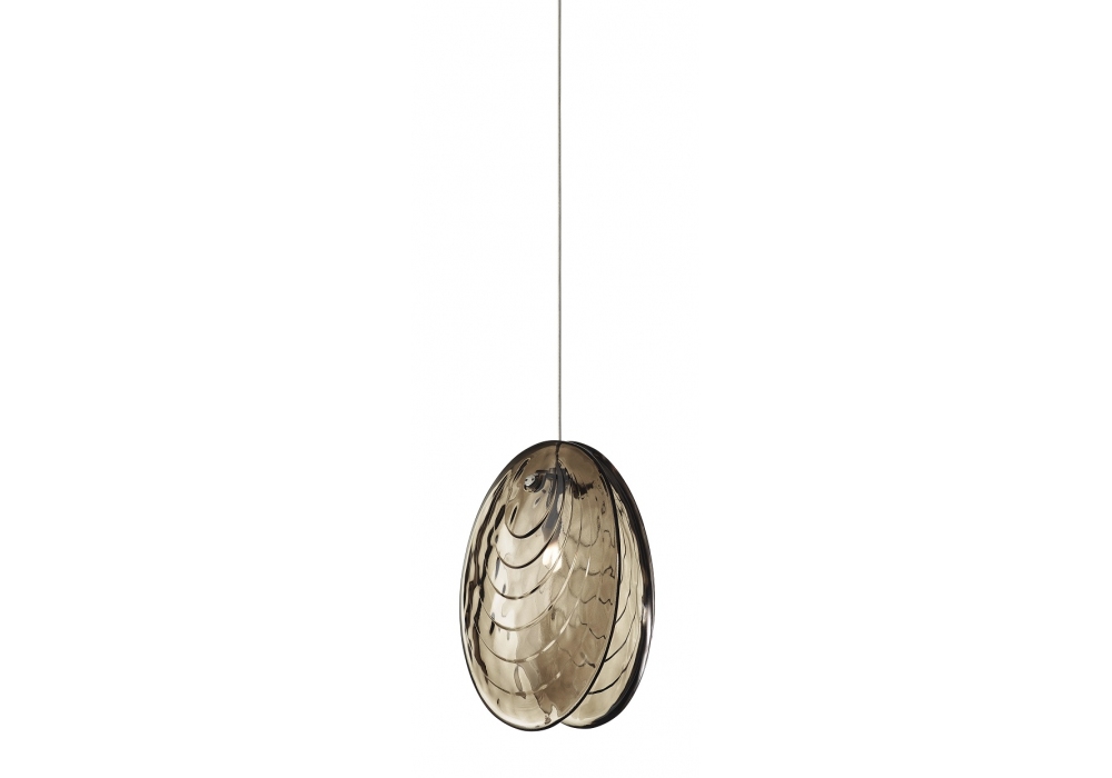 Mussels designed by Václav Mlynář for Bomma is a pendant lamp with hand-painted pressed glass diffuser and metal fitting. It is available in different finishes.