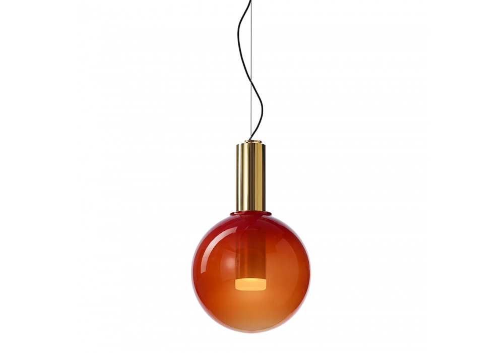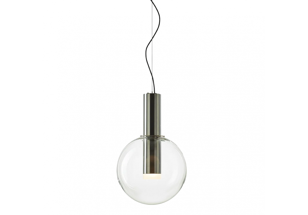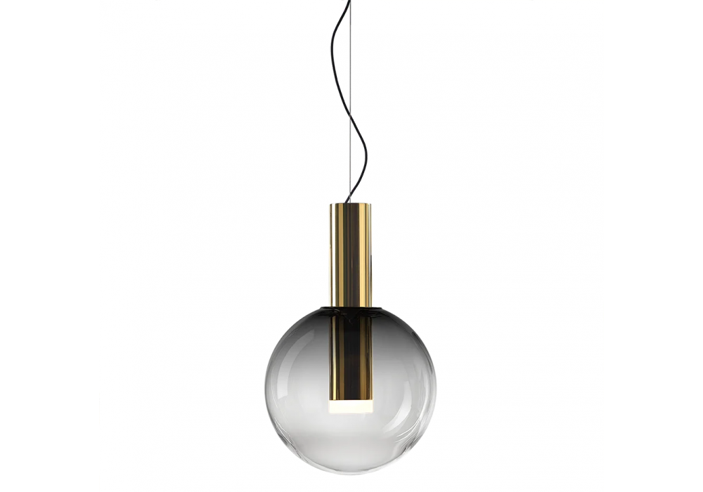 Phenomena Small Ball designed by Dechem Studio for Bomma is a pendant lamp with mouth-blown crystal lampshade and metal diffuser. It is available in different finishes.