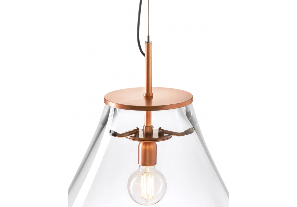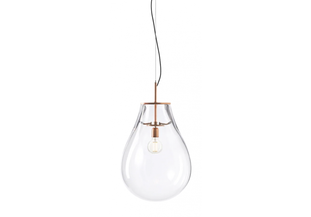 Tim designed by Olgoj Chorchoj for Bomma is a pendant lamp with mouth-blown crystal diffuser and metal fitting. Available in different finishes and dimensions.