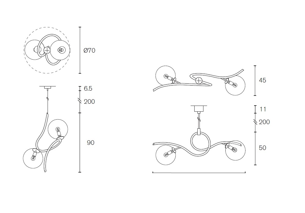 Ballet designed by William Brand for Brand Van Egmond is a pendant lamp made with metal structure and glass diffusers. Available in 2 dimensions.