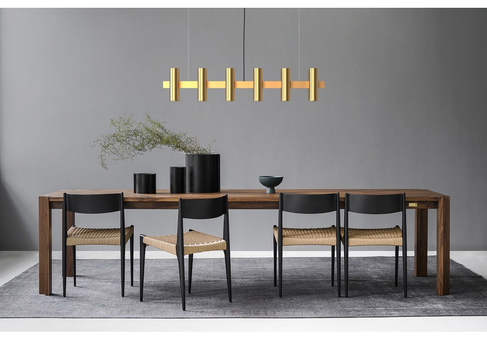 Cadovius 900 designed by Poul Cadovius for Dk3 is a suspension chandelier made of anodized aluminium, in different finishes. Rosette and ceiling connection bracket in powder-coated steel.
