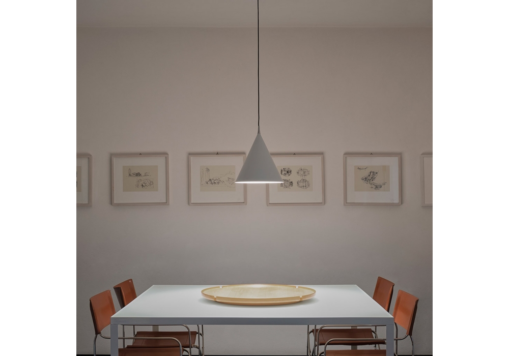 Cono designed by Carlo Guglielmi for Firmamento Milano is a pendant lamp with direct light made with a painted steel lampshade. Available in different finishes and dimensions.