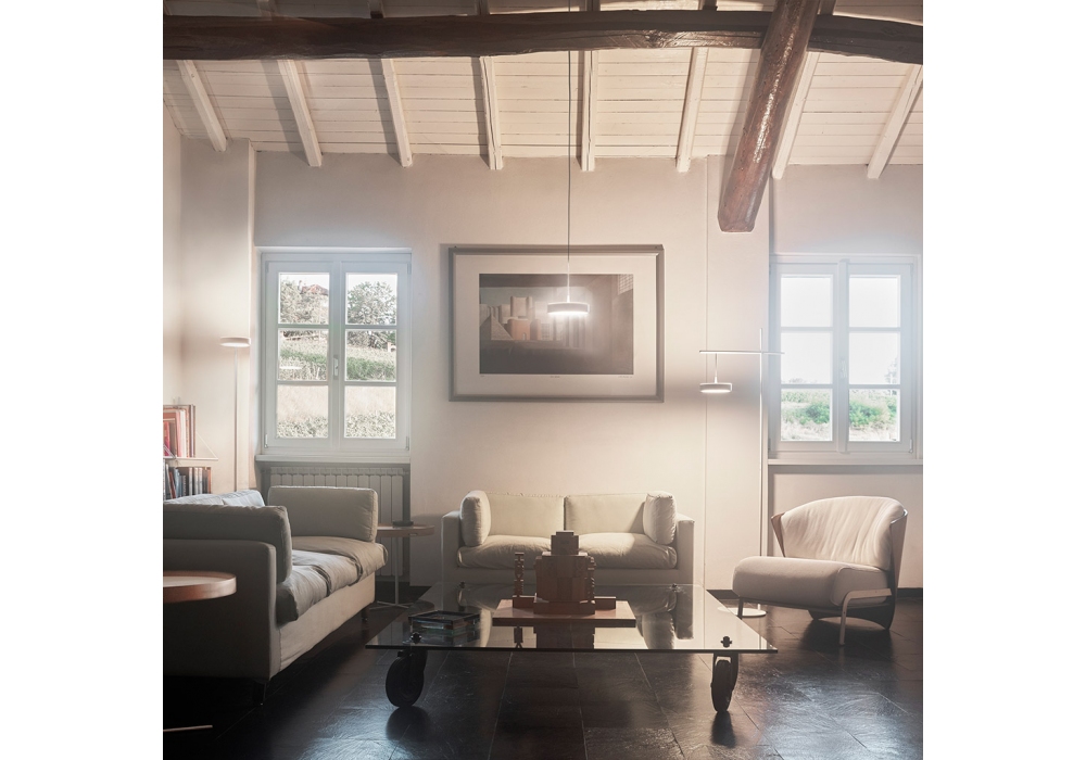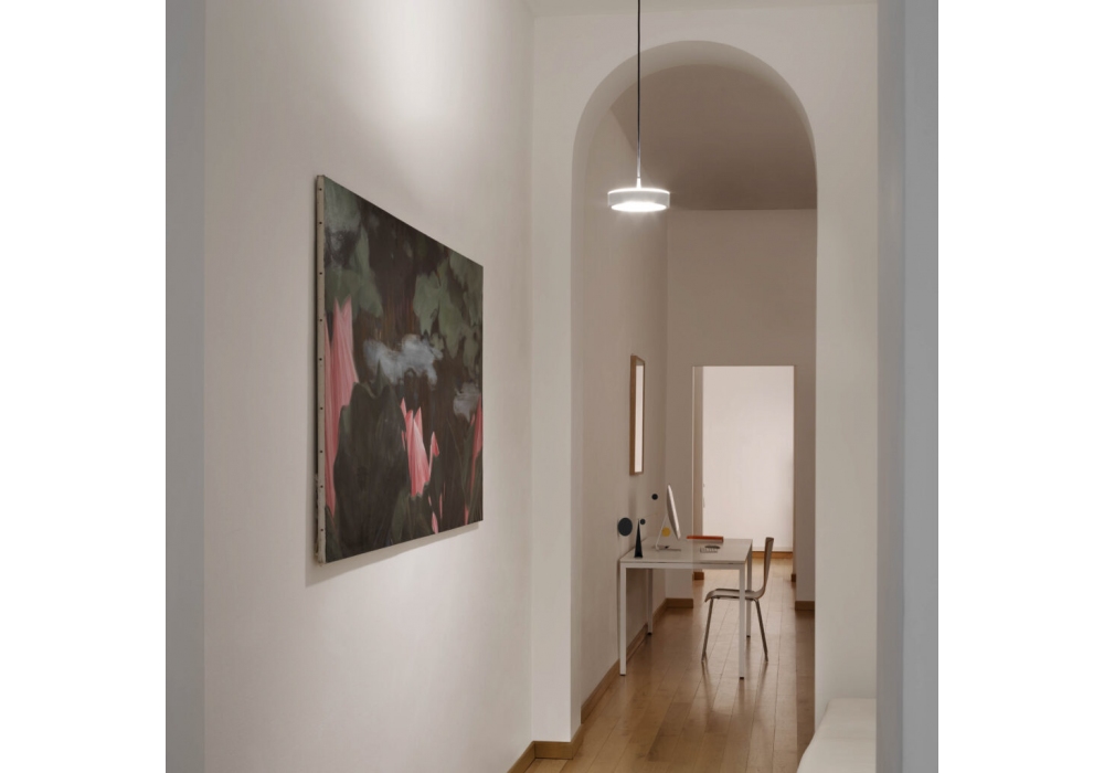 Tambù designed by Carlo Guglielmi for Firmamento Milano is a pendant lamp with direct and indirect light made with a painted steel structure. Available in different finishes.