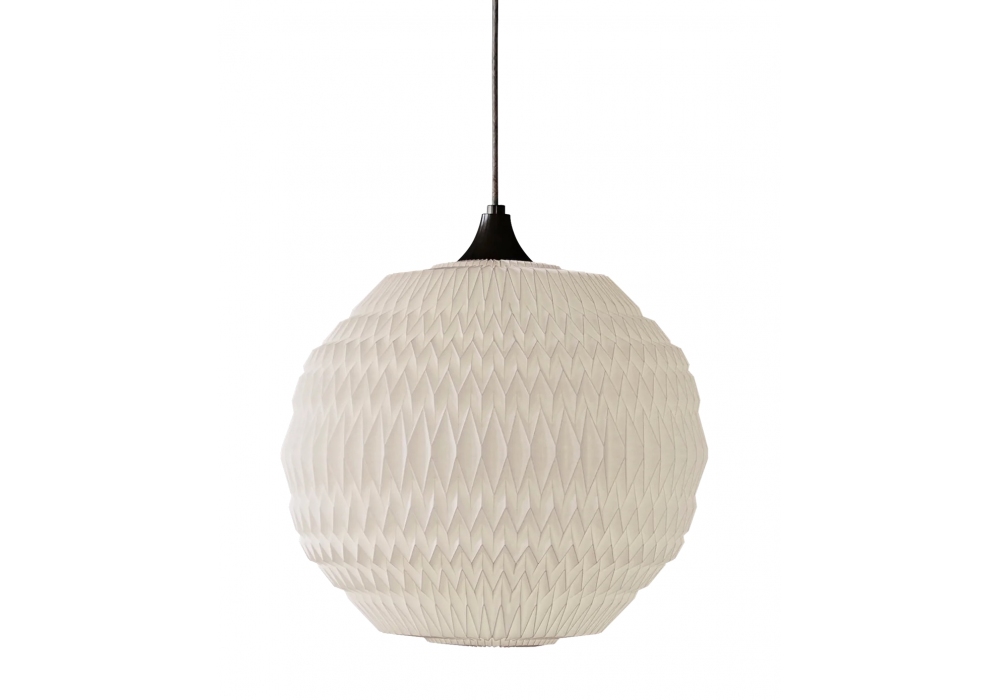 Caleo 3 designed by Rikke Frost for Le Klint is a pendant lamp made with paper lampshade, linen cord and bronze details.