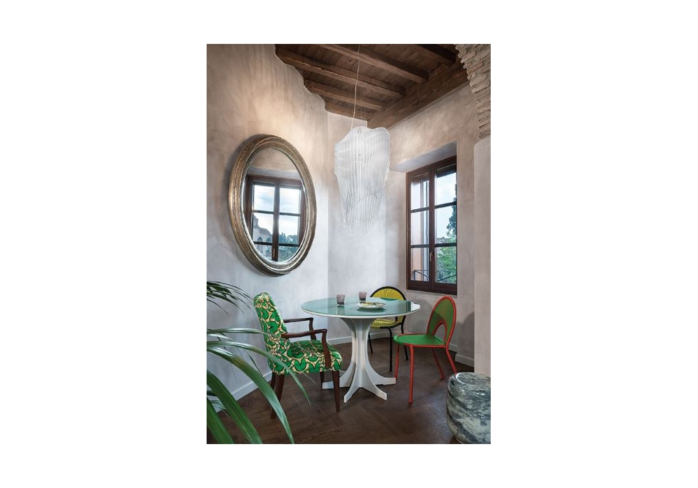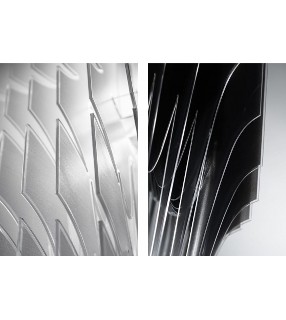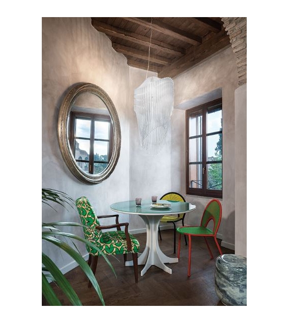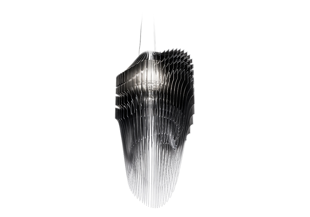 Avia designed by Zaha Hadid for Slamp is a circular pendant lamp with metal supporting structure. The diffuser is enriched by various elements in Cristalflex®/Lentiflex® and shield dimmable LED light sources. Avia is available in different finishes and sizes.