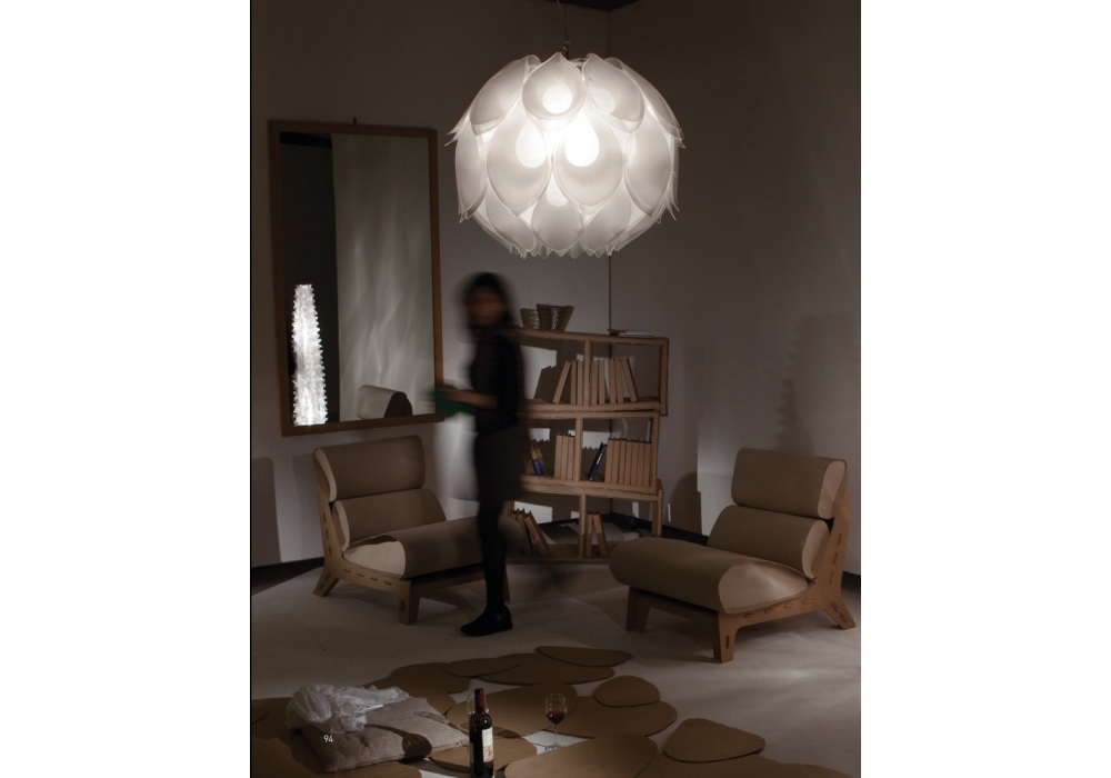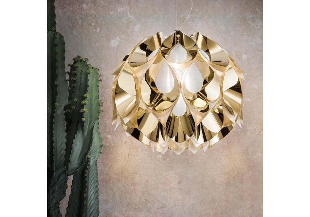 Flora designed by Nigel Coates for Slamp is a suspension lamp made of Lentiflex®, Goldflex®, Copperflex®, Pewterflex® or Steelflex®. Available in different finishes.