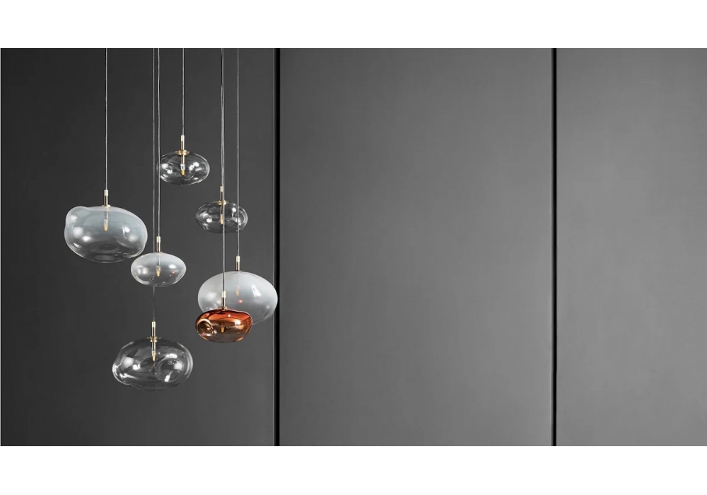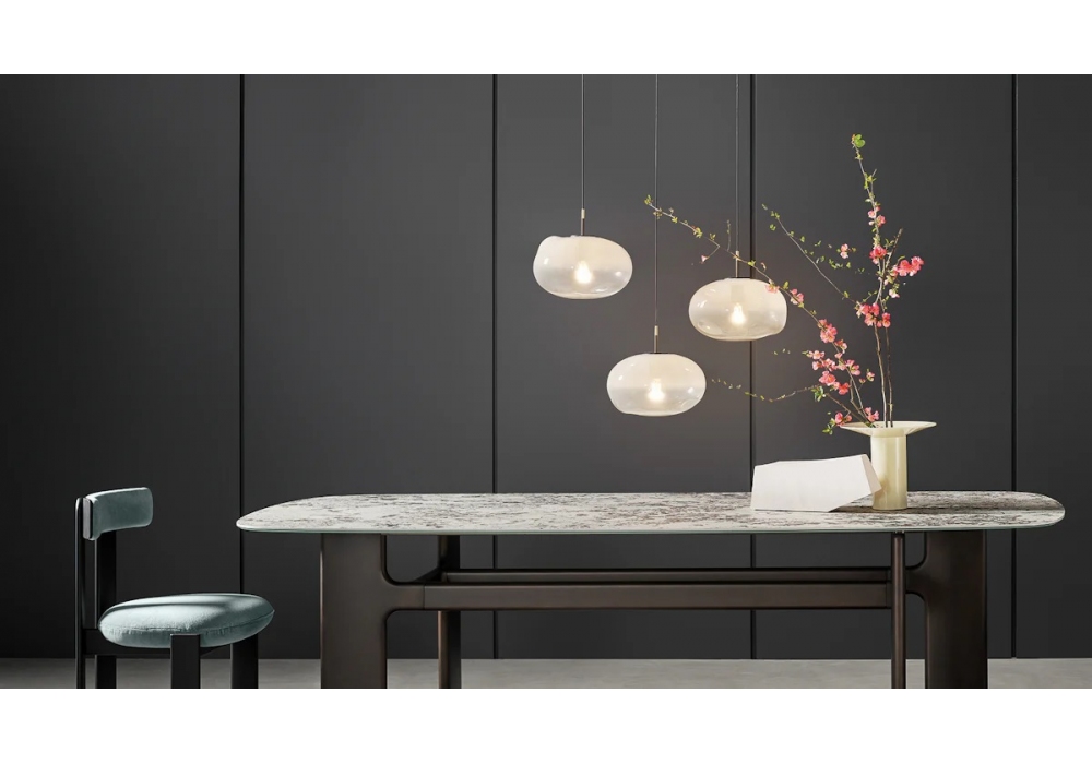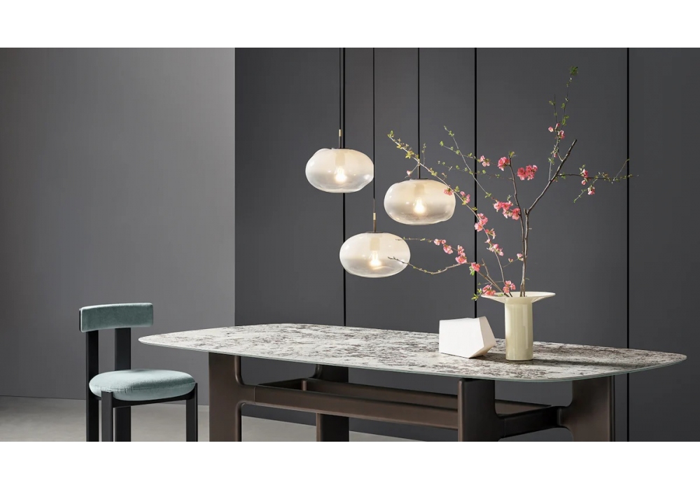 Pepita designed by Studio Team design for Bonaldo is a suspension lamp with glass lampshade, metal structure, matt brass detail and rosette in the same finish as the structure. Available in different finishes and versions.