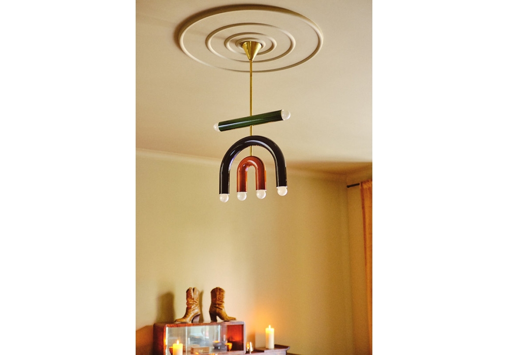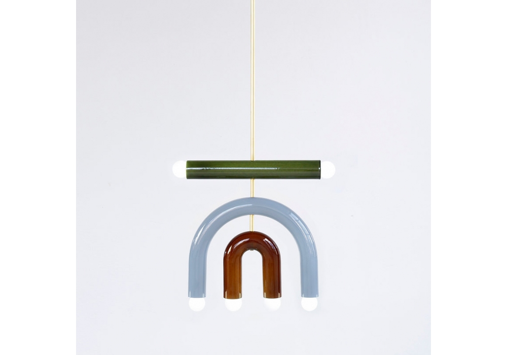 TRN D1 designed by Pani Jurek is a pendant lamp made with metal structure and hand-enamelled ceramic diffuser.