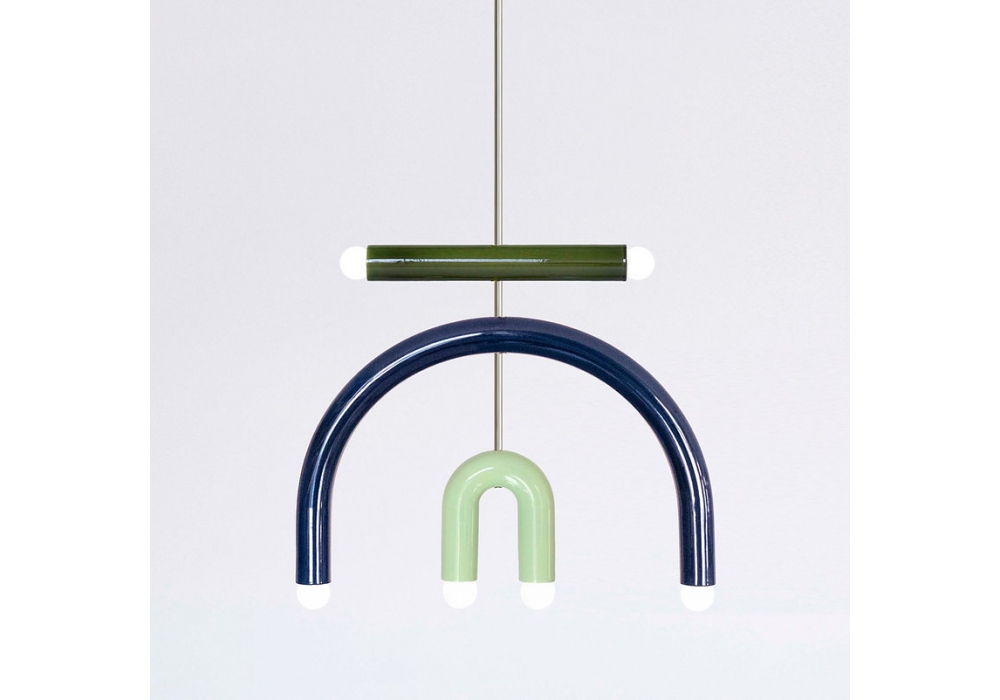 TRN F3 designed by Pani Jurek is a pendant lamp made with metal structure and hand-enamelled ceramic diffuser.