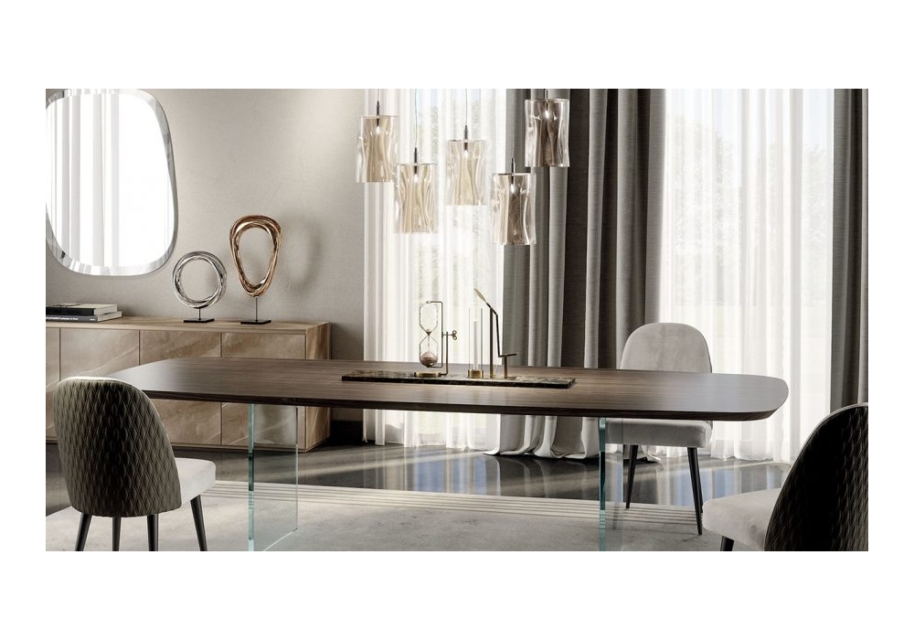 Dandolo designed by Reflex Angelo is a suspension lamp in transparent, grey, tobacco or amber-iridium Murano glass. Also available with bronze, silver or copper sputtering finish. Black ceiling support.