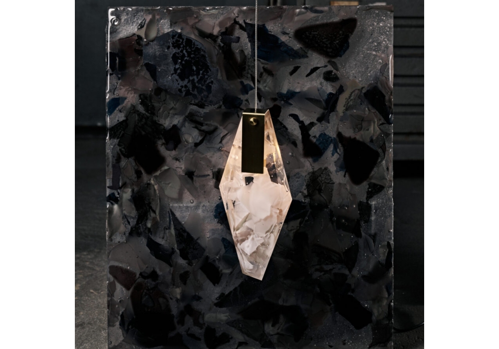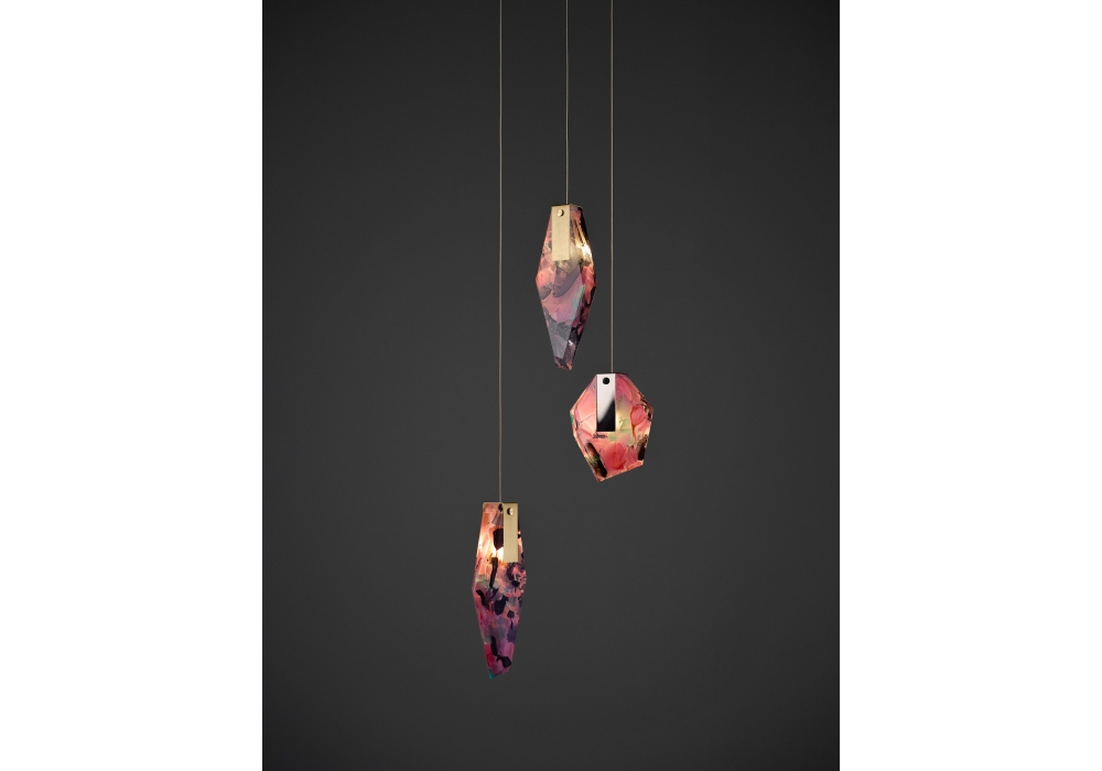 Fragments designed by DECHEM Studio for Bomma is a pendant lamp with Fragmentglass diffuser and brushed gold or anthracite detail. Available in different finishes and dimensions.