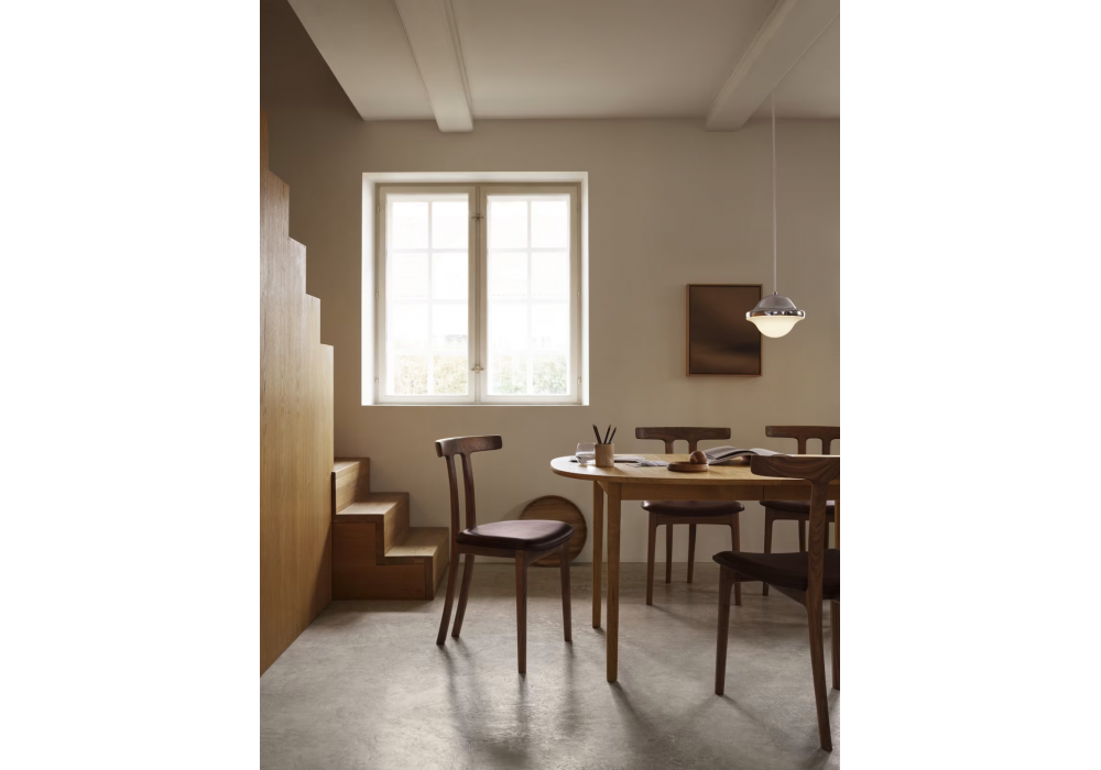 HK20 Bubi Pendant Lamp designed by Henning Koppel for Carl Hansen & Søn is a pendant lamp with opal acrylic shade and chromed or brass-plated steel diffuser.