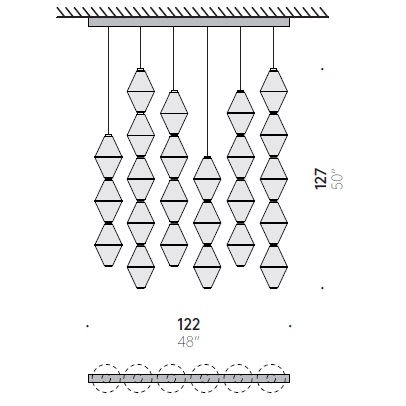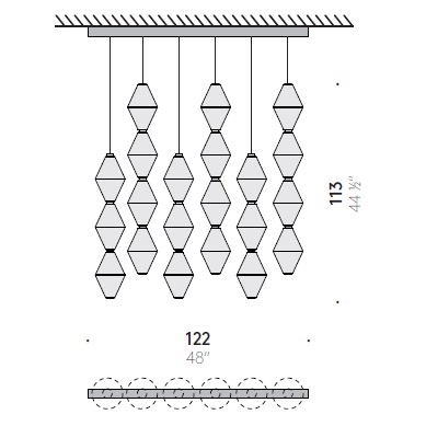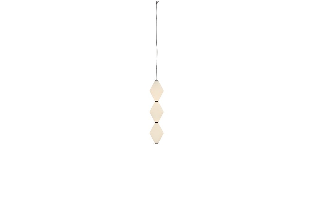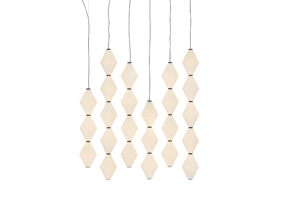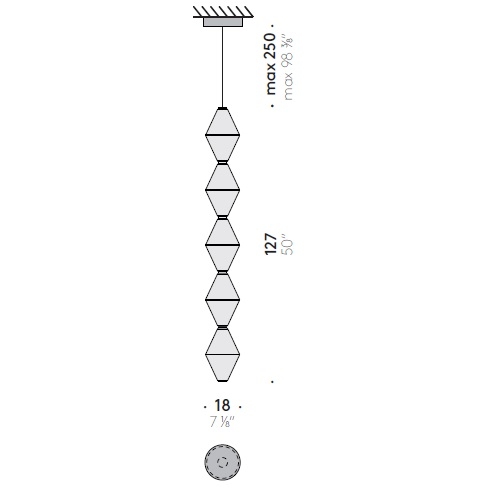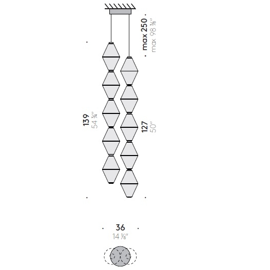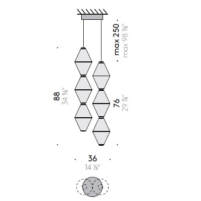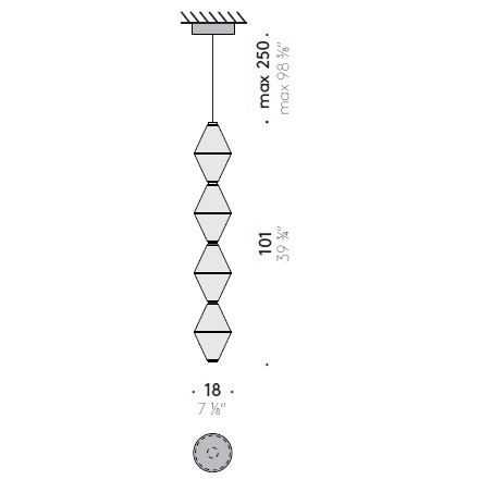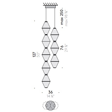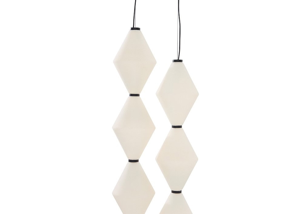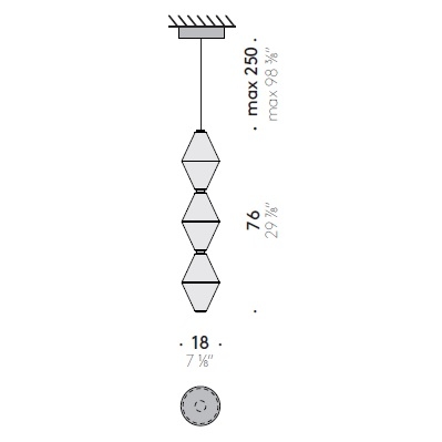 Helium Mini designed by Elisa Ossino for DePadova is a pendant lamp made with a matt black “soft touch” powder-coated metal structure. Diffuser in hand-blown opal acid-etched Triplex glass; or hand-decorated sand-effect glass. Power supply and dimmer integrated into the ceiling rose.