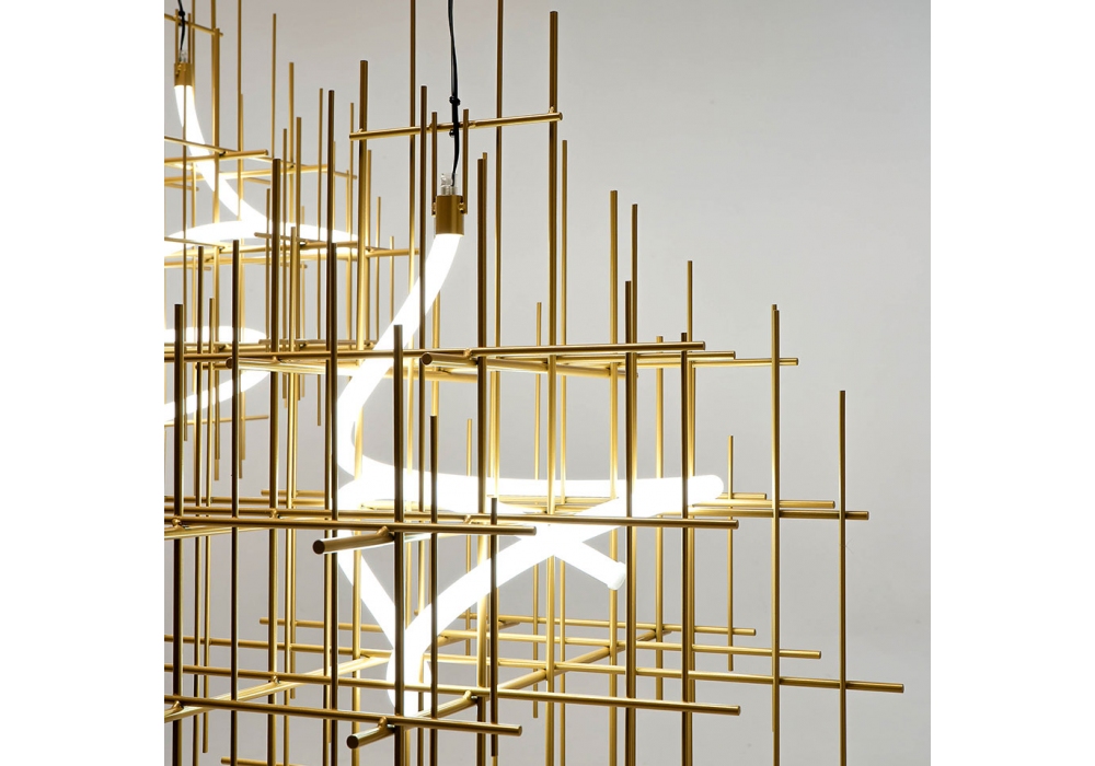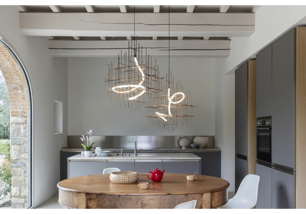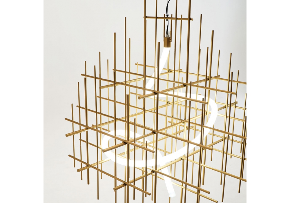 Metrica designed by CTRLZAK for Mogg is a pendant lamp with a metal structure available in burnished and gold finishes, complete with 360° LED tube.