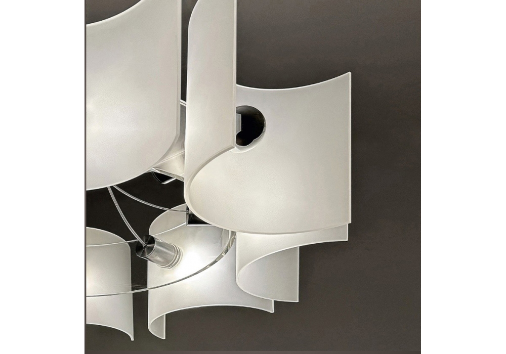 Etoile designed by Dordoni Studio for Foscarini is a pendant lamp inspired by the reinterpreted Murano chandelier. Made of acid-etched blown glass and Pyrex, the bulbs are anchored to the center of each diffuser, with a silver front finish, which directs the light towards the glass allowing it to absorb and redistribute it.