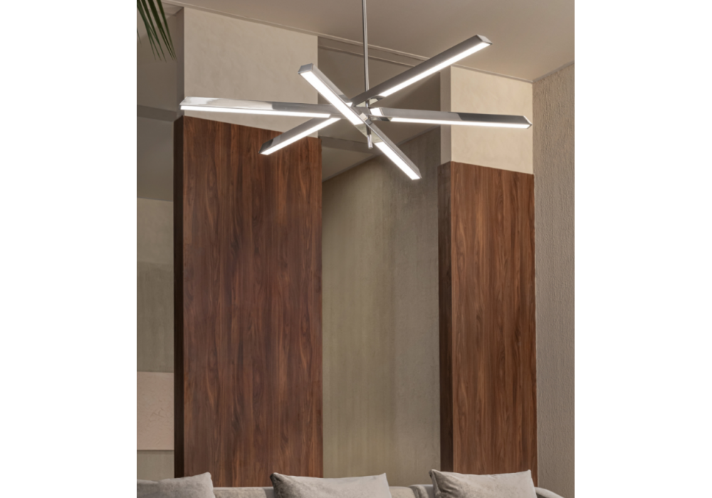 Pagano designed by Moitié Studio for Casamilano is a pendant lamp composed of 3 light bars in polished chrome or acid-etched nickel silver finish.