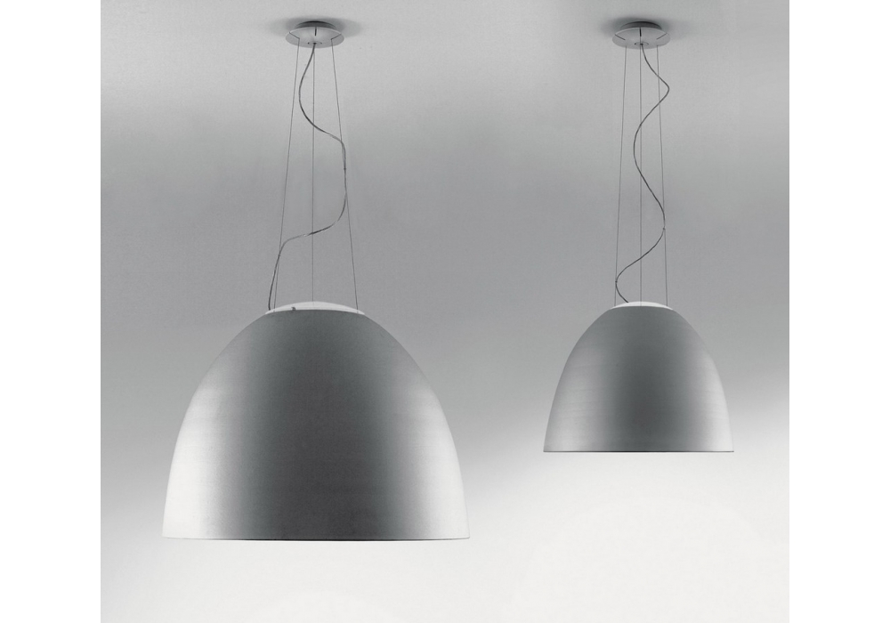 Nur 1618 designed by Ernesto Gismondi for Artemide is a suspension lamp with aluminum body, upper cap in sandblasted borosilicate glass.