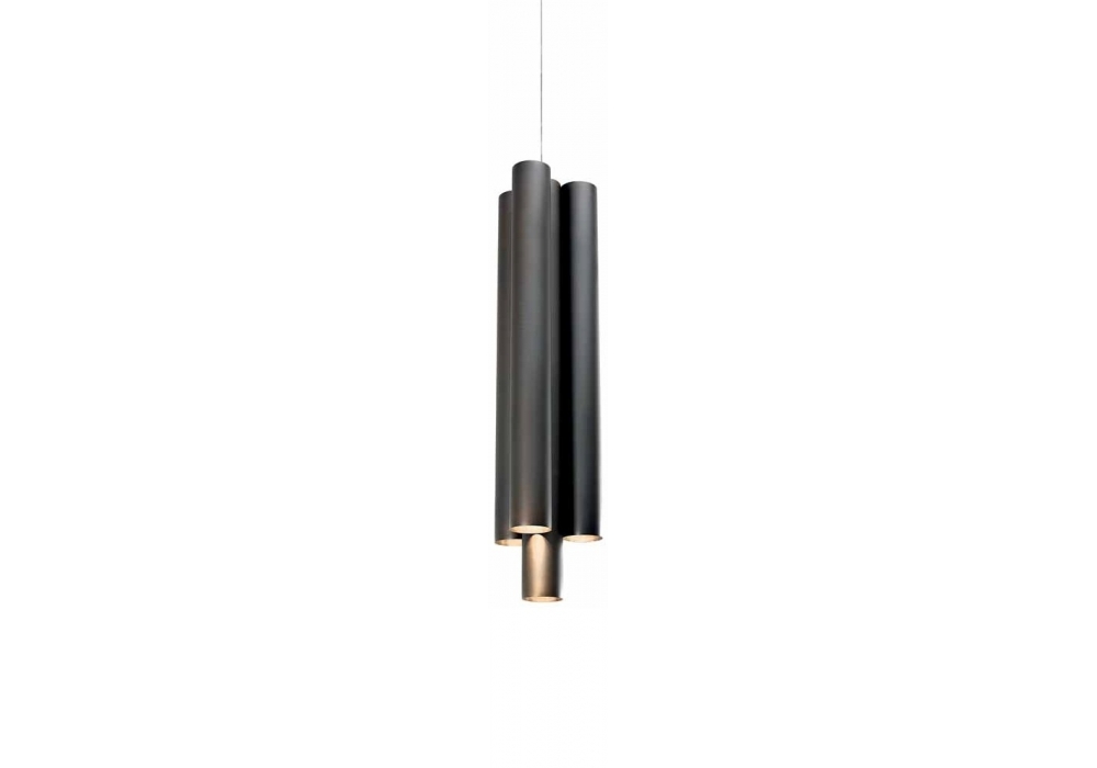 Tap by Ceccotti Collezioni is a celling lamp composed of 1 or 4 tubes of different lengths, entirely made in burnished brass finish or aluminium painted in matt black or white. Also available with LED lighting.