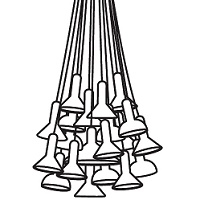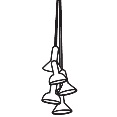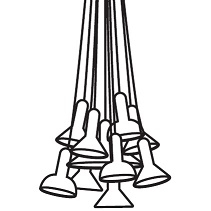 Torch Light Bunch designed by Sylvain Willenz for Established & Sons is a suspension lamp made up of lamps divided into groups arranged by 5, 10 and 20 lights. The structure is in PVC and the lampshade with diamond weave diffuser. Available with cable in different finishes.