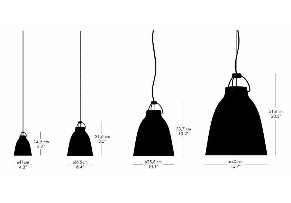 | Dimensions | Ø 11 x H 14.5 cm; Ø 16.5 x H 21.6 cm; Ø 25.8 x H 33.7 cm; Ø 40 x H 51.6 cm. |