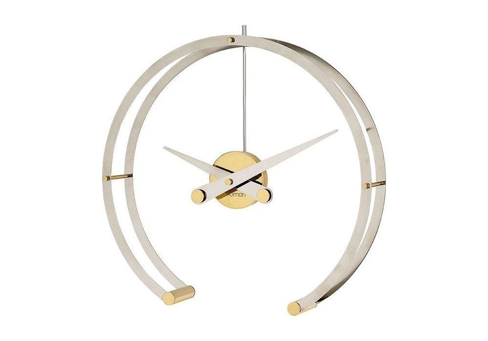 Omega designed and produced by Nomon is a table clock with rings and hands in stainless steel, with or without details in gold, central box in polished brass.