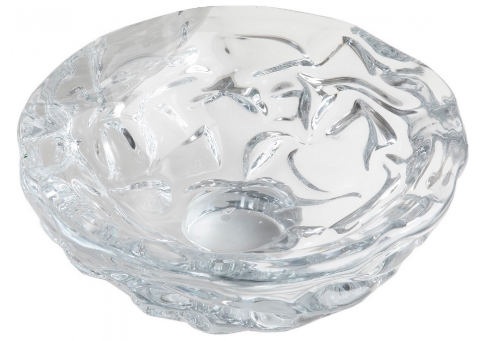 Amorfo designed by Giorgetti is an handmade glass bowl by master Murano glassmakers. Informal art object, made using the technique of the water-soaked cork which, in contact with the incandescent glass mass, gives Amorfo a unique and unrepeatable organic shape. The light on the wavy surface creates a game of unexpected reflections. Amorfo is available in the blue-grey and crystal variants.
