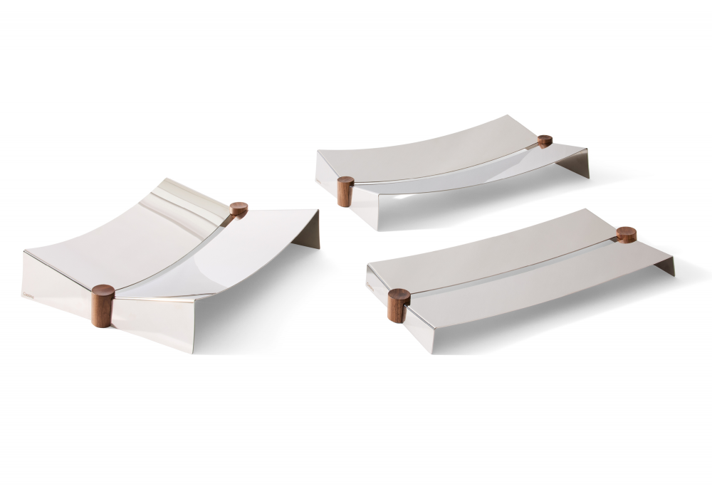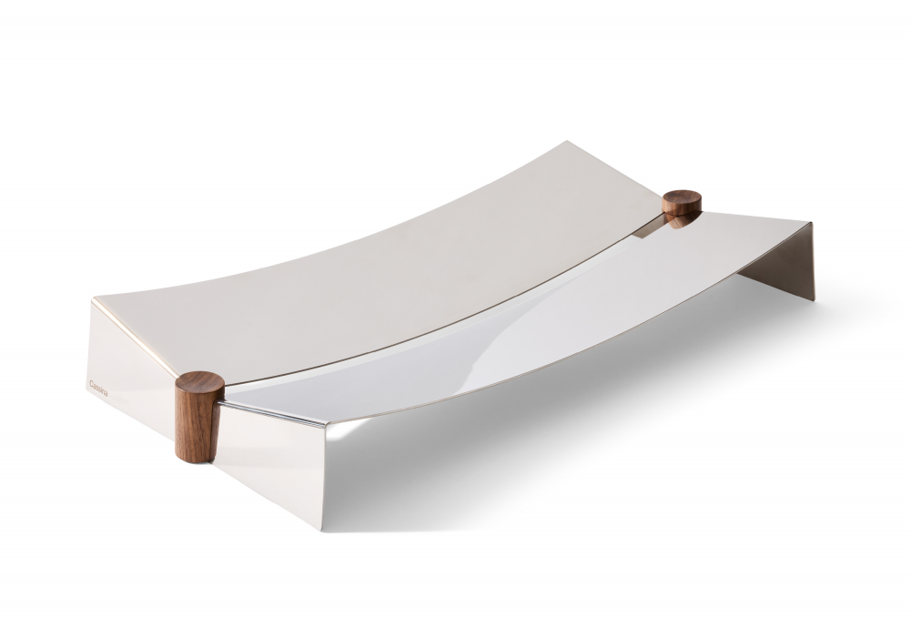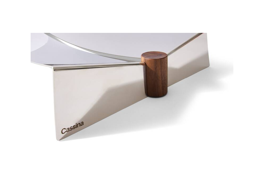 Glyntea designed by Chiara Andreatti for Cassina is a centrepiece made of polished stainless steel and details in canaletto walnut or black-stained ash.