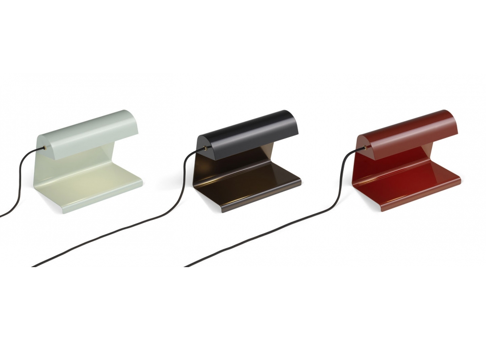 The small Lampe de Bureau, designed by Jean Prouvé for Vitra, is a practical luminaire that adds a decorative accent to both offices and homes. It is constructed from bent sheet steel with a powder-coated finish, and the textile-covered cable recalls the materials common at the time of its inception.