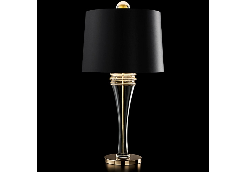 Rive Gauche designed by Giorgia Brusemini for Barovier & Toso is a table lamp with circular base and details in chrome or galvanized gold colored metal. The lamp body is covered in Venetian glass and adopts a fabric lampshade that shields the dimmable LED or halogen light sources. Rive Gauche is available in different finishes.