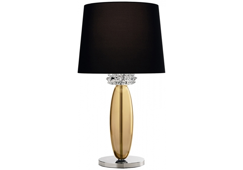 Rotterdam designed and produced by Barovier & Toso is a table lamp with a circular metal base and a Venetian glass body embellished with crystal spools. The diffuser is circular in shape in fabric and shields a dimmable LED or halogen light source. Rotterdam is available in different finishes.