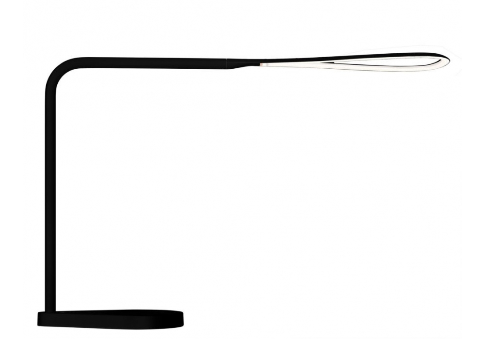 Kinx designed by Karim Rashid for Fontana Arte is a table lamp with directional light that can be dimmed by touch on the base. Black painted metal structure with slightly adjustable body and head. Polycarbonate diffuser. Black power cord and plug. The lamp is equipped with a USB port (1A - 5V) for recharging mobile devices.