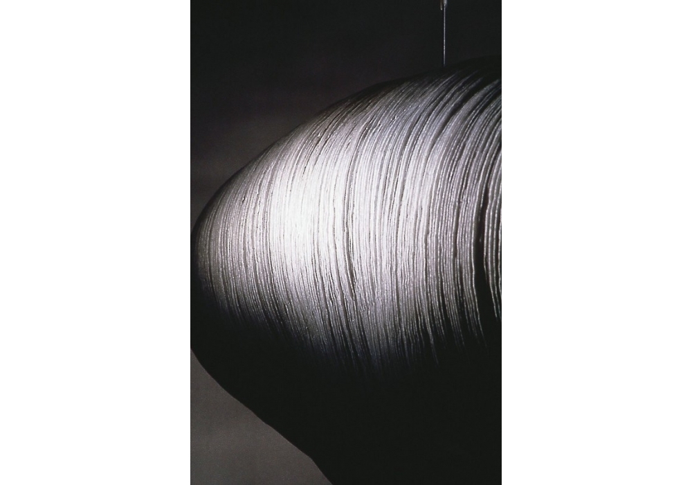 Samurai designed by Dagmar Mombach for Ingo Maurer is a table lamp with paper diffuser and structure in: metal, stainless steel, silicone, glass. Fiberglass screens. It is equipped with an LED module which can be continuously dimmed. The cable is visible.