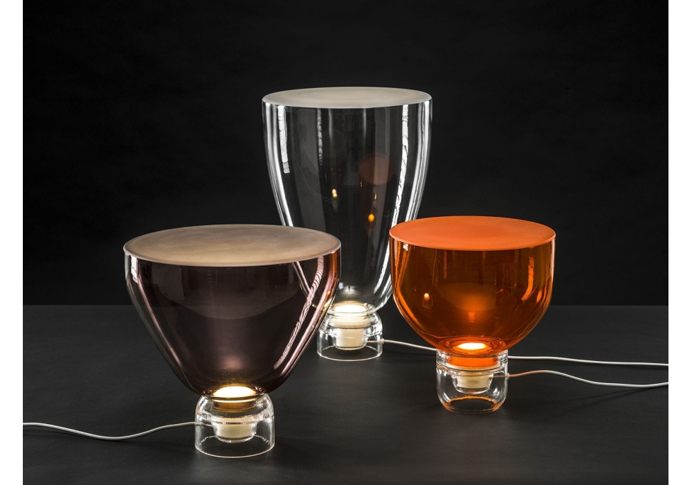 Lightline designed by Lucie Koldová for Brokis is a structured table lamp entirely in blown glass. The diffuser has a cup or chalice shape depending on the model chosen and is available in different colors. The base is cylindrical in shape and you can choose between dark smoke gray or glossy transparent or acid-etched. The light source used is of the LED type. Lightline is available in different versions and dimensions.