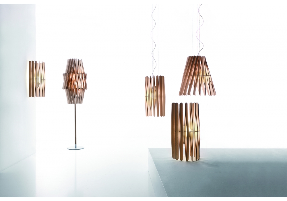 Stick F23 designed by Matali Crasset for Fabbian is a table lamp characterised by its innovative design. The light is discreetly diffused from a frame decorated with laths of Ayous wood. Also available with different light sources. Protection Index IP 20.