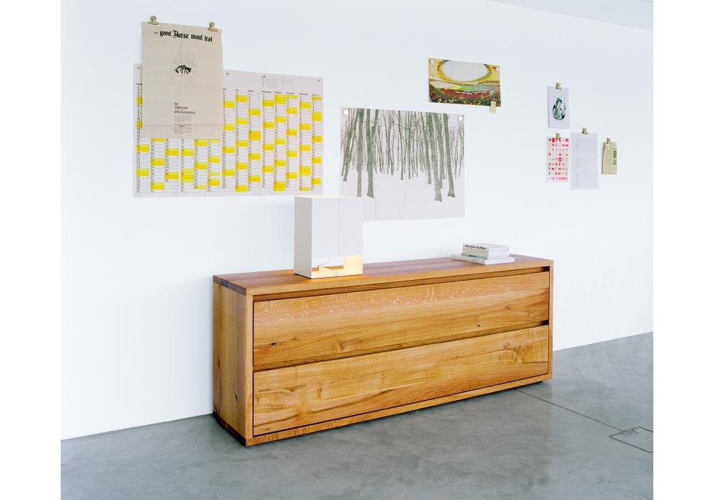 LT02 Seam Two designed by Mark Holmes for E15 is a table lamp made of folded and laser-cut aluminum sheet and powder coated. Available in 2 dimensions.