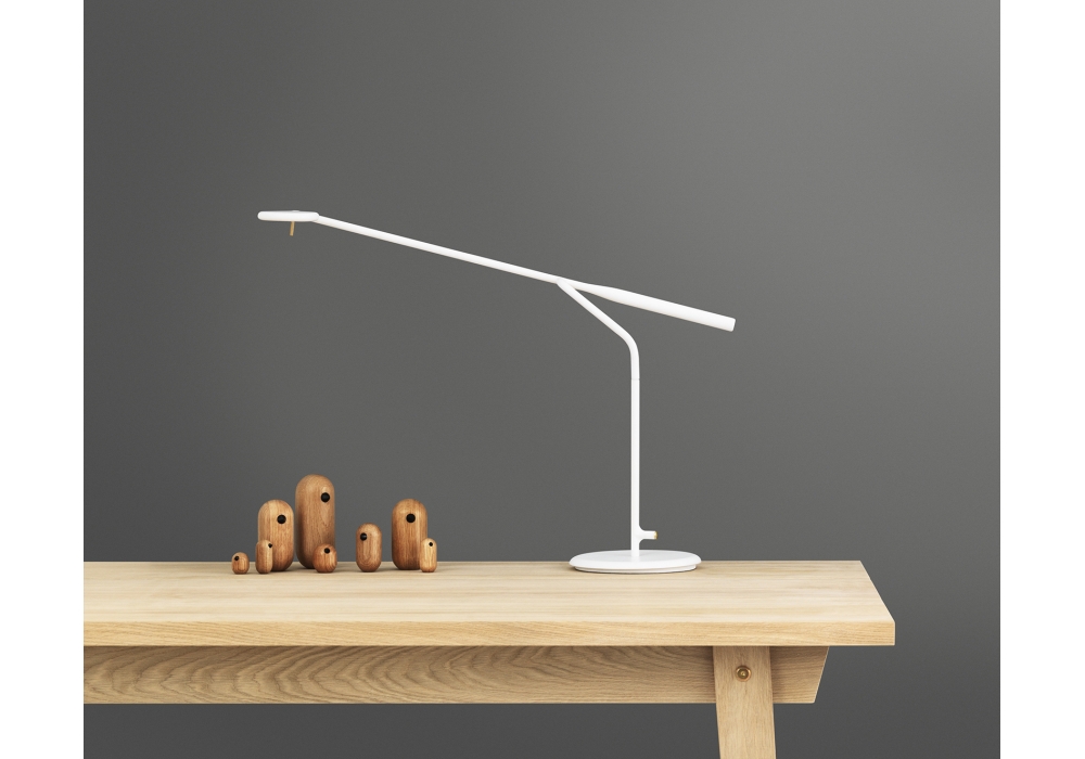 Flow designed by Andreas Kowalewski for Normann Copenhagen is a table lamp in powder and zinc lacquered steel. Flow consists of four tapered metal elements, connected at three points, movable and rolling. A very dynamic construction, capable of directing the light source in multiple directions. Flow is available in EU (Europe) or US (U.S.A) version and in three different finishes; white, black or dark green, except in the US version in white or black only.