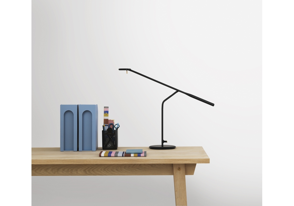Flow designed by Andreas Kowalewski for Normann Copenhagen is a table lamp in powder and zinc lacquered steel. Flow consists of four tapered metal elements, connected at three points, movable and rolling. A very dynamic construction, capable of directing the light source in multiple directions. Flow is available in EU (Europe) or US (U.S.A) version and in three different finishes; white, black or dark green, except in the US version in white or black only.k green.
